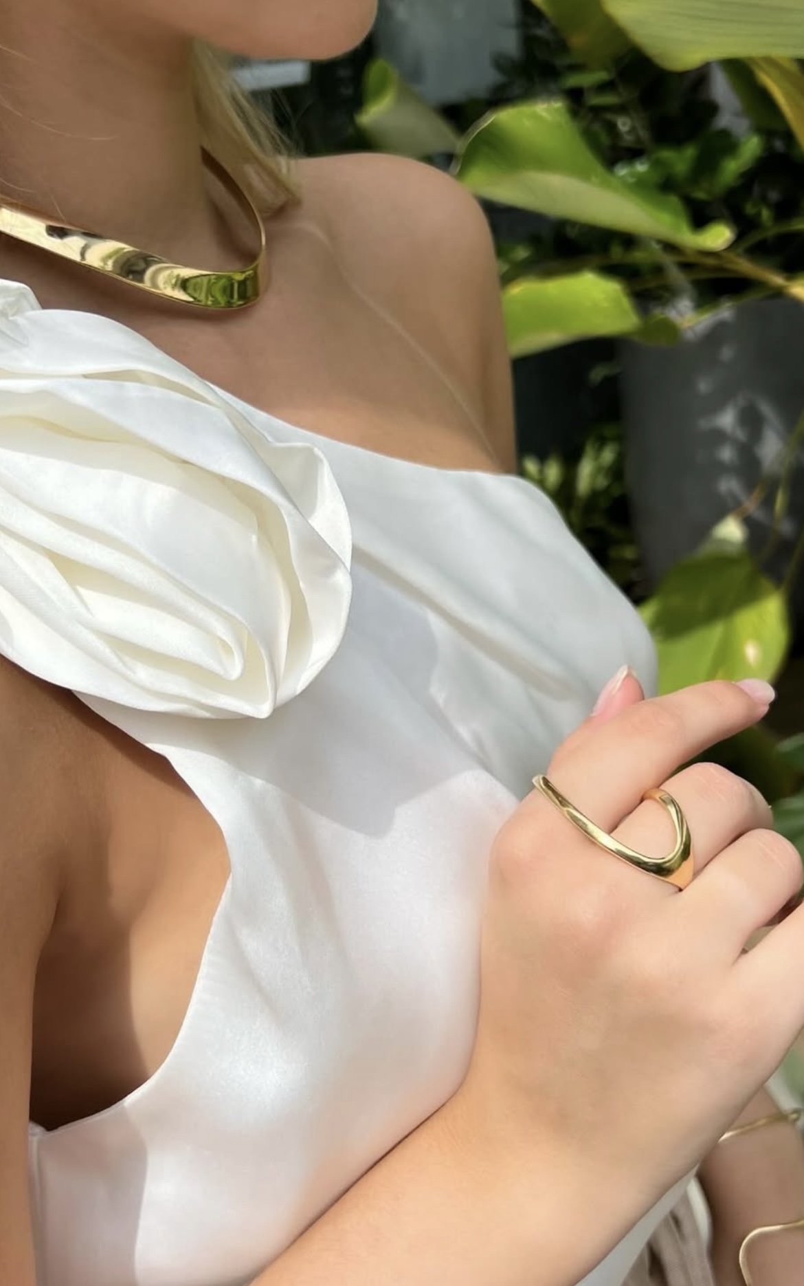 Anel regulável banhado a ouro 18k, em formato orgânico.