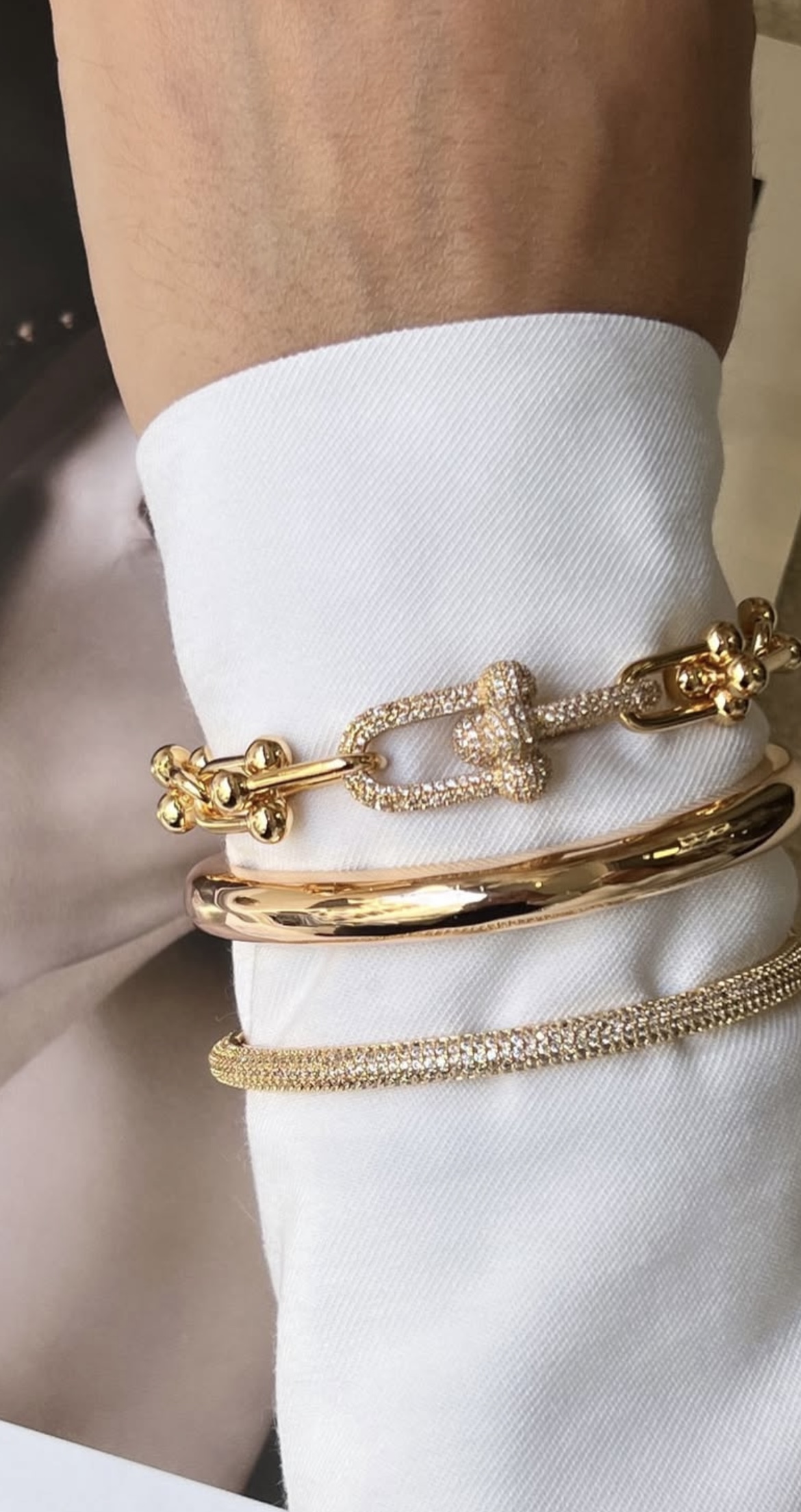 Pulseira banhada a ouro 18k, com elos inspirados na alta joalheria. Detalhes de Elis cravejados.